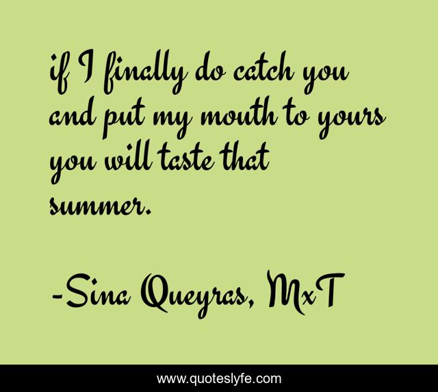 This page presents the quote "if I finally do catch you and put my mouth to yours you will taste that summer.". Author of this quote is Sina Queyras, MxT. This quote is about poem, love-poem, poetry,.