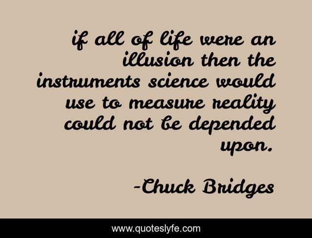 This page presents the quote "if all of life were an illusion then the instruments science would use to measure reality could not be depended upon.". Author of this quote is Chuck Bridges. This quote is about science, life, illusion,.