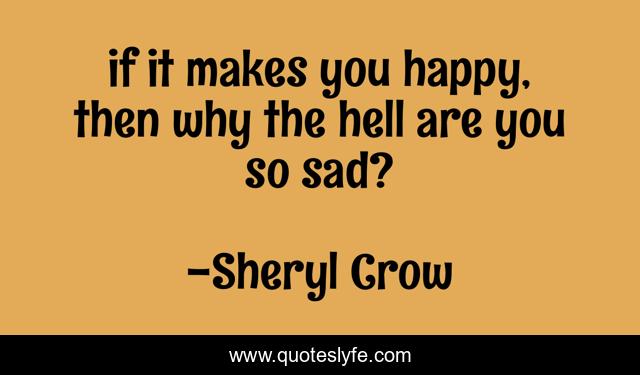 This page presents the quote "if it makes you happy, then why the hell are you so sad?". Author of this quote is Sheryl Crow. This quote is about sadness, happiness,.