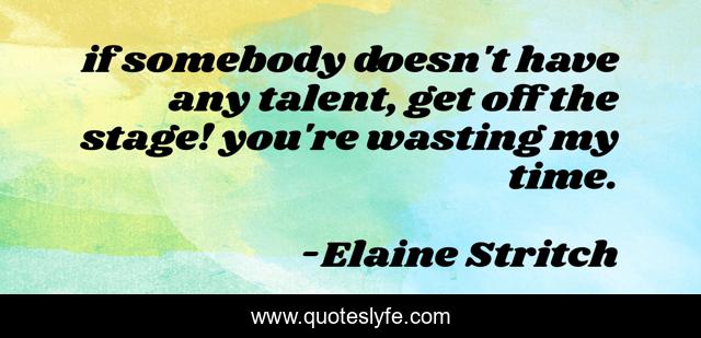 This page presents the quote "if somebody doesn't have any talent, get off the stage! you're wasting my time.". Author of this quote is Elaine Stritch. This quote is about elaine-stritch, performing, talent, stage,.