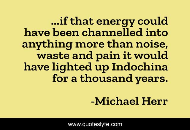 This page presents the quote "...if that energy could have been channelled into anything more than noise, waste and pain it would have lighted up Indochina for a thousand years.". Author of this quote is Michael Herr. This quote is about dispatches, memoir,.