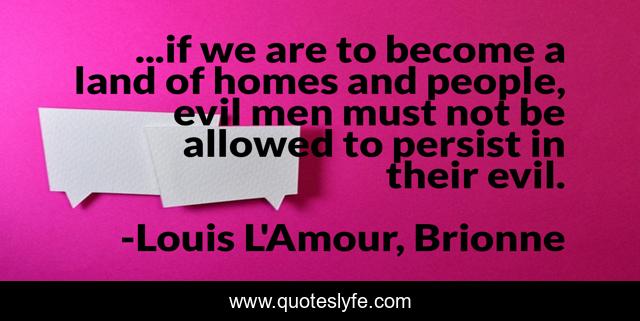 This page presents the quote "...if we are to become a land of homes and people, evil men must not be allowed to persist in their evil.". Author of this quote is Louis L'Amour, Brionne. This quote is about justice, evil, nation,.