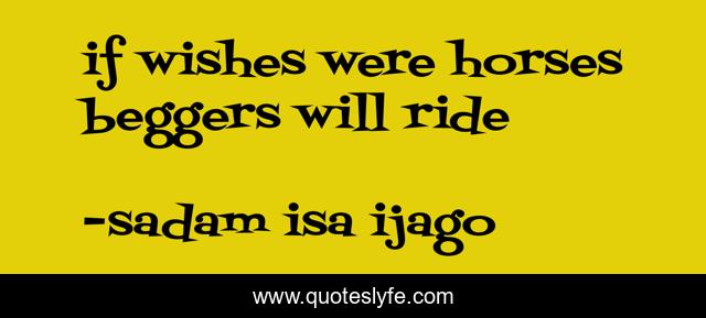 This page presents the quote "if wishes were horses beggers will ride". Author of this quote is sadam isa ijago. .