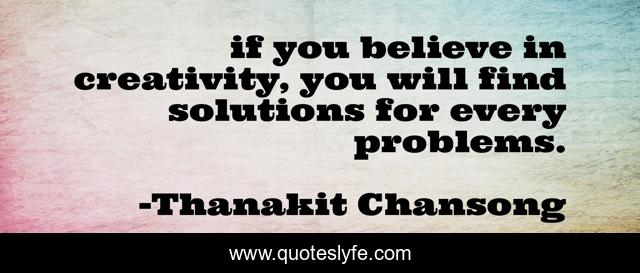 This page presents the quote "if you believe in creativity, you will find solutions for every problems.". Author of this quote is Thanakit Chansong. .
