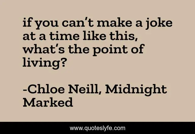 This page presents the quote "if you can’t make a joke at a time like this, what’s the point of living?". Author of this quote is Chloe Neill, Midnight Marked. This quote is about humor, life, laughter,.