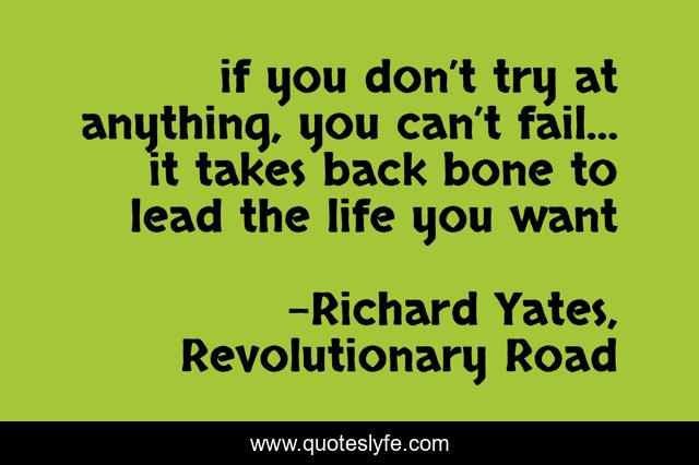 This page presents the quote "if you don’t try at anything, you can’t fail… it takes back bone to lead the life you want". Author of this quote is Richard Yates, Revolutionary Road. .
