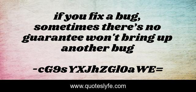 This page presents the quote "if you fix a bug, sometimes there’s no guarantee won't bring up another bug". Author of this quote is cG9sYXJhZGl0aWE=. This quote is about problem, bug,.