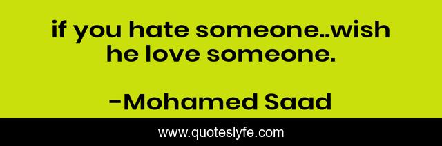 This page presents the quote "if you hate someone..wish he love someone.". Author of this quote is Mohamed Saad. This quote is about hate, love, affection,.