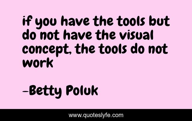 This page presents the quote "if you have the tools but do not have the visual concept, the tools do not work". Author of this quote is Betty Poluk. This quote is about photographs, foto, art, photographer, photography, photos, artists, fotografía,.
