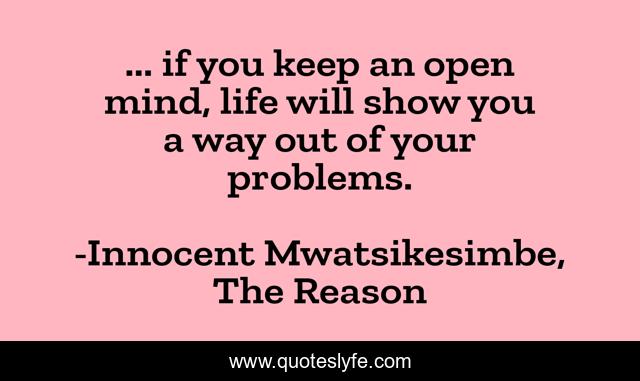 This page presents the quote "... if you keep an open mind, life will show you a way out of your problems.". Author of this quote is Innocent Mwatsikesimbe, The Reason. This quote is about life, problems, self-improvement, happiness, self-help,.
