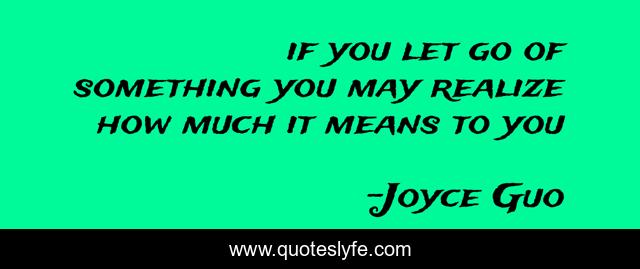 This page presents the quote "if you let go of something you may realize how much it means to you". Author of this quote is Joyce Guo. This quote is about letting-go, lost,.