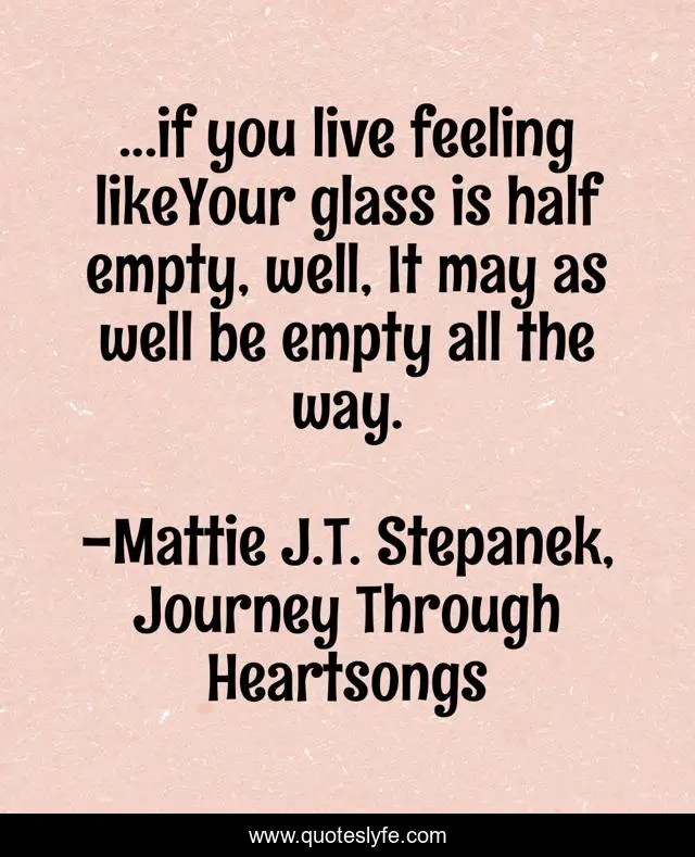 This page presents the quote "...if you live feeling likeYour glass is half empty, well, It may as well be empty all the way.". Author of this quote is Mattie J.T. Stepanek, Journey Through Heartsongs. This quote is about pessimism, optimism,.