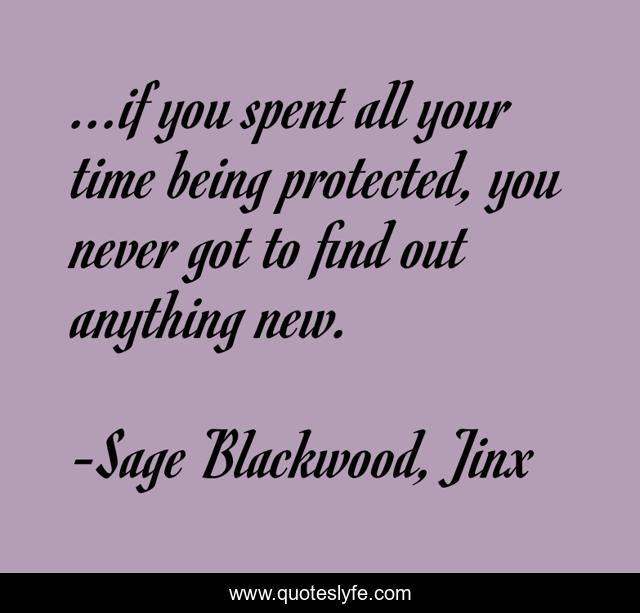 This page presents the quote "...if you spent all your time being protected, you never got to find out anything new.". Author of this quote is Sage Blackwood, Jinx. This quote is about bravery, inspiration,.