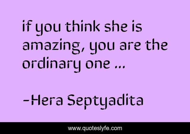 This page presents the quote "if you think she is amazing, you are the ordinary one ...". Author of this quote is Hera Septyadita. .