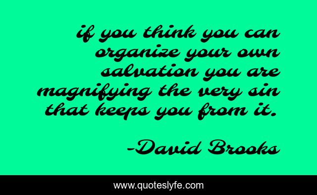 This page presents the quote "if you think you can organize your own salvation you are magnifying the very sin that keeps you from it.". Author of this quote is David Brooks. .