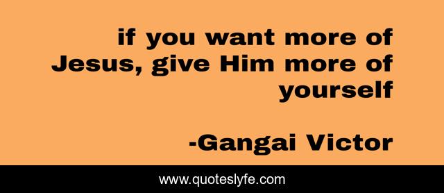 This page presents the quote "if you want more of Jesus, give Him more of yourself". Author of this quote is Gangai Victor. This quote is about surrender-to-god, christianity, christ, jesus,.