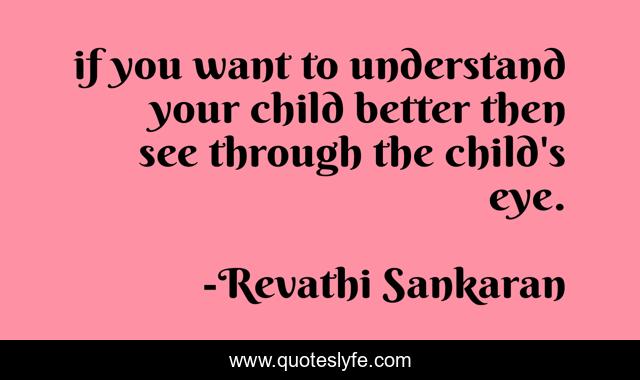 This page presents the quote "if you want to understand your child better then see through the child's eye.". Author of this quote is Revathi Sankaran. This quote is about creativity, children, truth, realization,.