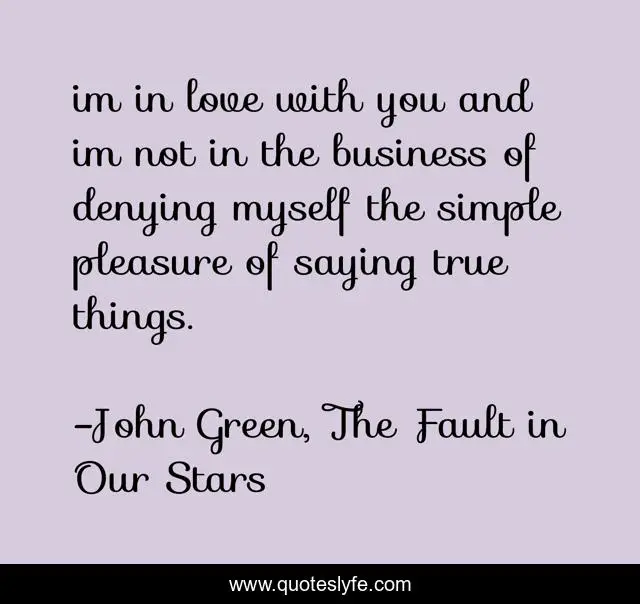 This page presents the quote "im in love with you and im not in the business of denying myself the simple pleasure of saying true things.". Author of this quote is John Green, The Fault in Our Stars. This quote is about loss, life, love, cancer, pleasure, affection,.
