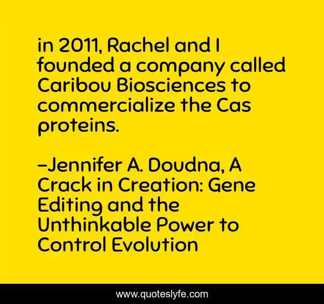 "Jennifer A. Doudna, A Crack in Creation: Gene Editing and the Unthinkable Power to Control Evolution Quotes." Quoteslyfe.com, 2025. Fri. 05 Dec. 2025. <https://www.quoteslyfe.com/quote/in-2011-Rachel-and-I-founded-a-42256>.