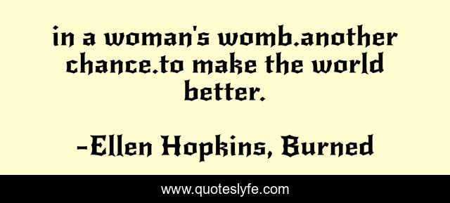 "Ellen Hopkins, Burned Quotes." Quoteslyfe.com, 2025. Tue. 09 Dec. 2025. <https://www.quoteslyfe.com/quote/in-a-woman-s-womb-another-chance-2963>.
