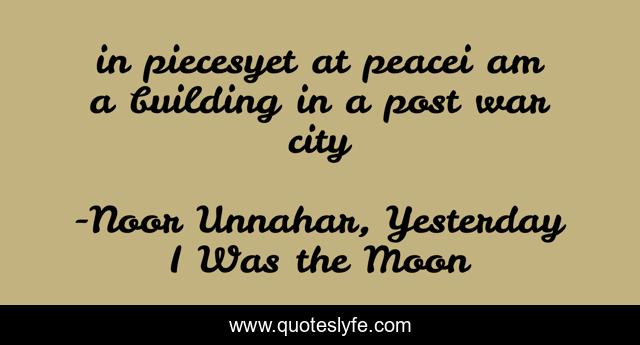 This page presents the quote "in piecesyet at peacei am a building in a post war city". Author of this quote is Noor Unnahar, Yesterday I Was the Moon. .
