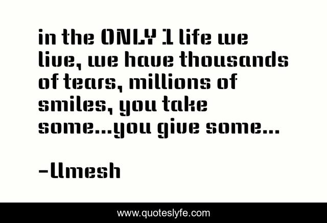 This page presents the quote "in the ONLY 1 life we live, we have thousands of tears, millions of smiles, you take some...you give some...". Author of this quote is Umesh. .