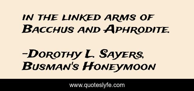 This page presents the quote "in the linked arms of Bacchus and Aphrodite.". Author of this quote is Dorothy L. Sayers, Busman's Honeymoon. .