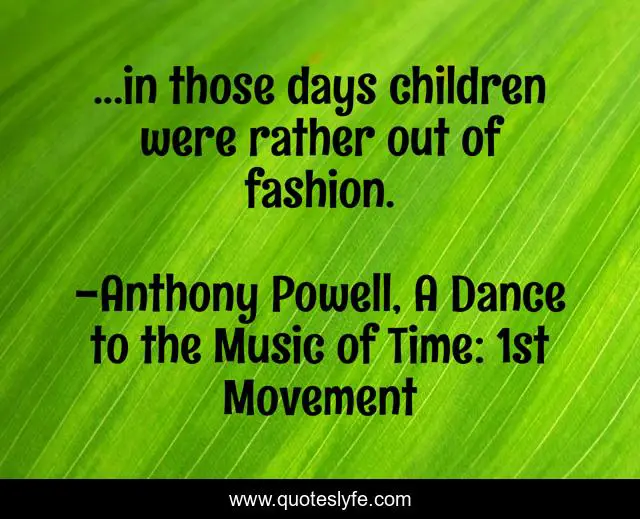 This page presents the quote "...in those days children were rather out of fashion.". Author of this quote is Anthony Powell, A Dance to the Music of Time: 1st Movement. This quote is about fashion, children,.