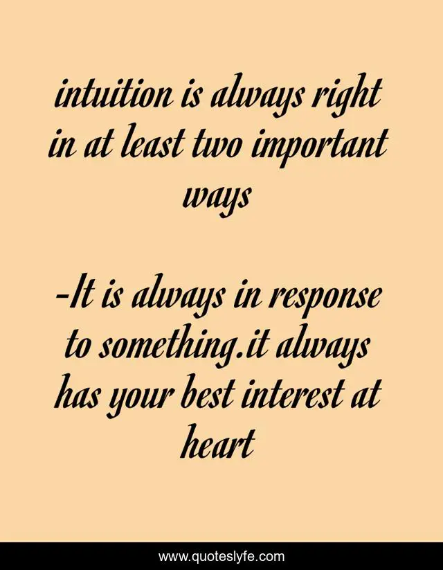 "It is always in response to something.it always has your best interest at heart Quotes." Quoteslyfe.com, 2025. Sat. 06 Dec. 2025. <https://www.quoteslyfe.com/quote/intuition-is-always-right-in-at-least-232087>.