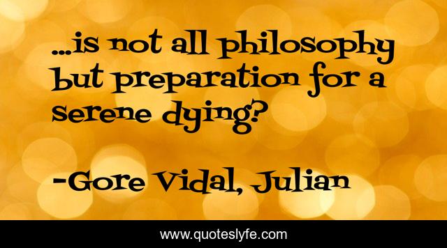 This page presents the quote "...is not all philosophy but preparation for a serene dying?". Author of this quote is Gore Vidal, Julian. This quote is about aging, death, philosophy, 1962, philosophy-of-death, libanius, mortality,.