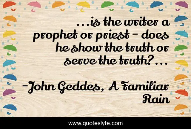 "John Geddes, A Familiar Rain Quotes." Quoteslyfe.com, 2025. Fri. 05 Dec. 2025. <https://www.quoteslyfe.com/quote/is-the-writer-a-prophet-or-priest-227109>.