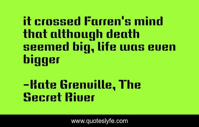 This page presents the quote "it crossed Farren's mind that although death seemed big, life was even bigger". Author of this quote is Kate Grenville, The Secret River. This quote is about enthusiasm, perception, inspirational,.
