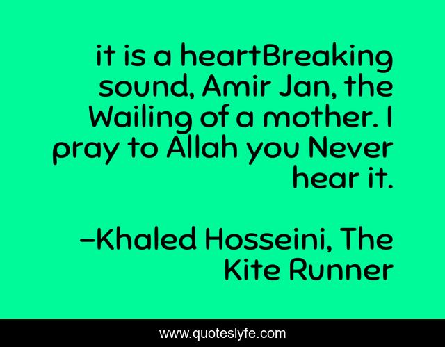 This page presents the quote "it is a heartBreaking sound, Amir Jan, the Wailing of a mother. I pray to Allah you Never hear it.". Author of this quote is Khaled Hosseini, The Kite Runner. This quote is about loss, grieving-mother, allah, prayer, reality,.
