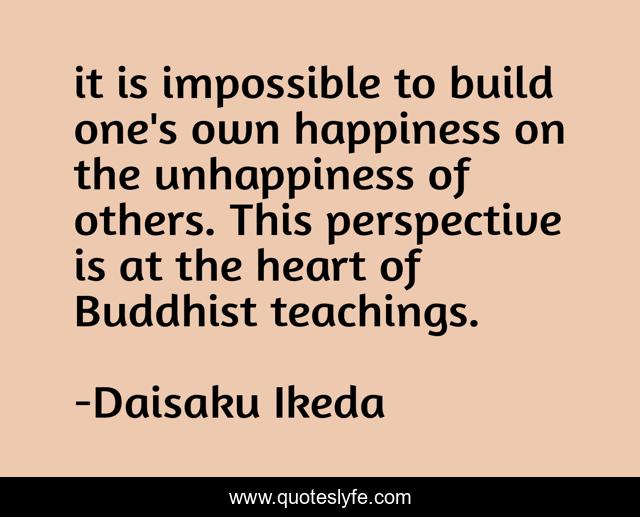 This page presents the quote "it is impossible to build one's own happiness on the unhappiness of others. This perspective is at the heart of Buddhist teachings.". Author of this quote is Daisaku Ikeda. This quote is about destiny, peace, humanism, buddhism, karma, inspirational, enthusiasm, self-reformation, happiness,.