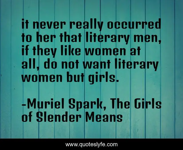 This page presents the quote "it never really occurred to her that literary men, if they like women at all, do not want literary women but girls.". Author of this quote is Muriel Spark, The Girls of Slender Means. This quote is about men, humor,.