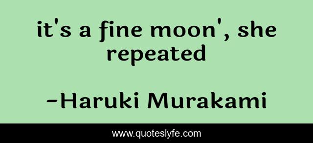 This page presents the quote "it's a fine moon', she repeated". Author of this quote is Haruki Murakami. This quote is about the-moon, thoughts,.