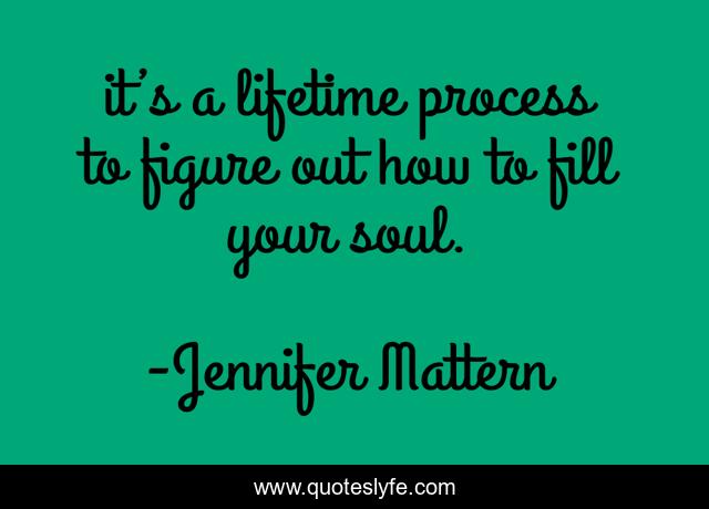 This page presents the quote "it’s a lifetime process to figure out how to fill your soul.". Author of this quote is Jennifer Mattern. This quote is about self-discovery, soul-searching, self-awareness-soul,.