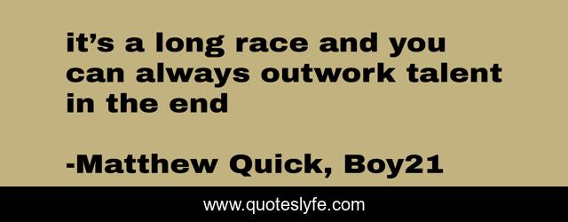 This page presents the quote "it’s a long race and you can always outwork talent in the end". Author of this quote is Matthew Quick, Boy21. This quote is about talentt, hard-work,.
