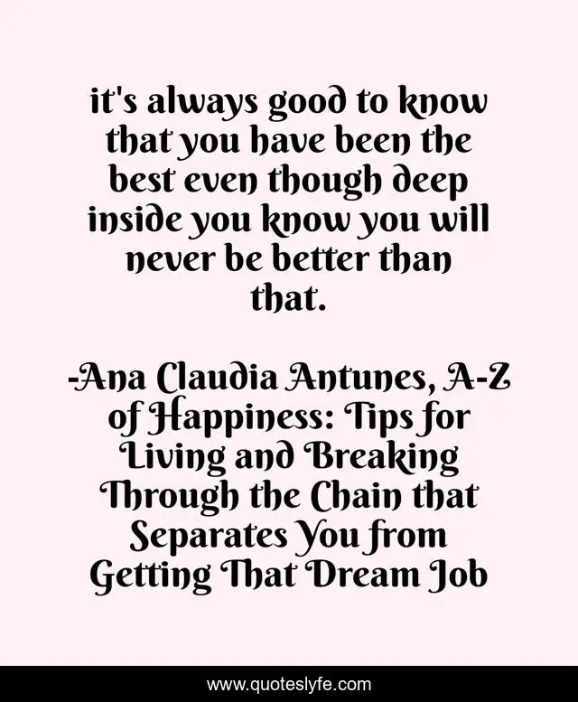 Check all other quotes by Ana Claudia Antunes, A-Z of Happiness: Tips for Living and Breaking Through the Chain that Separates You from Getting That Dream Job