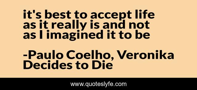 This page presents the quote "it's best to accept life as it really is and not as I imagined it to be". Author of this quote is Paulo Coelho, Veronika Decides to Die. This quote is about life, acceptance,.