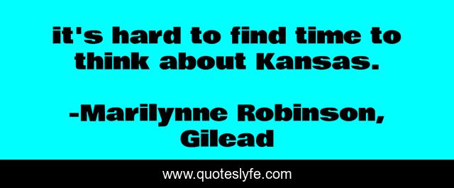 This page presents the quote "it's hard to find time to think about Kansas.". Author of this quote is Marilynne Robinson, Gilead. .