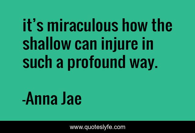 This page presents the quote "it’s miraculous how the shallow can injure in such a profound way.". Author of this quote is Anna Jae. This quote is about hurt, shallow, profound, injure,.