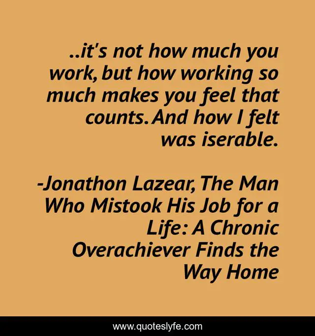"Jonathon Lazear, The Man Who Mistook His Job for a Life: A Chronic Overachiever Finds the Way Home Quotes." Quoteslyfe.com, 2025. Sat. 06 Dec. 2025. <https://www.quoteslyfe.com/quote/it-s-not-how-much-you-work-71938>.