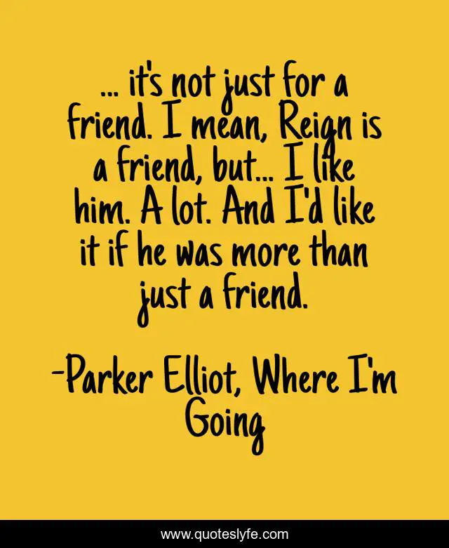 This page presents the quote "... it's not just for a friend. I mean, Reign is a friend, but... I like him. A lot. And I'd like it if he was more than just a friend.". Author of this quote is Parker Elliot, Where I'm Going. This quote is about friends, love, emotions, affection,.