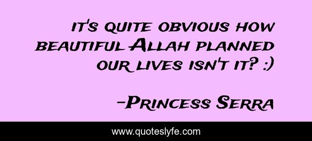 This page presents the quote "it's quite obvious how beautiful Allah planned our lives isn't it? :)". Author of this quote is Princess Serra. .