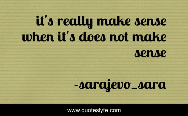 This page presents the quote "it's really make sense when it's does not make sense". Author of this quote is sarajevo_sara. This quote is about inspirational-attitude, life-and-living, thinking-reason,.