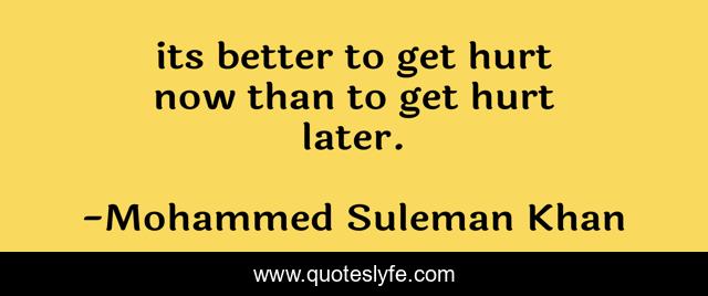 "Mohammed Suleman Khan Quotes." Quoteslyfe.com, 2025. Fri. 05 Dec. 2025. <https://www.quoteslyfe.com/quote/its-better-to-get-hurt-now-than-179091>.