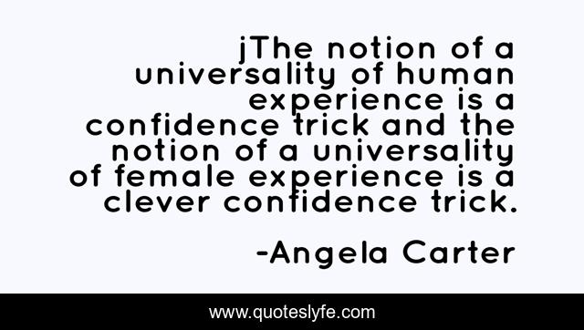 This page presents the quote "jThe notion of a universality of human experience is a confidence trick and the notion of a universality of female experience is a clever confidence trick.". Author of this quote is Angela Carter. This quote is about gender, human-condition, anti-humanist, humanism,.
