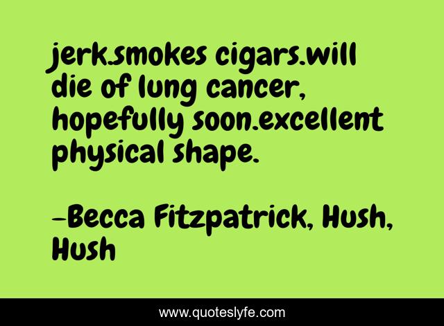 "Becca Fitzpatrick, Hush, Hush Quotes." Quoteslyfe.com, 2025. Sat. 06 Dec. 2025. <https://www.quoteslyfe.com/quote/jerk-smokes-cigars-will-die-of-lung-149643>.