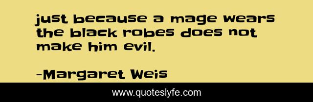This page presents the quote "just because a mage wears the black robes does not make him evil.". Author of this quote is Margaret Weis. .